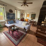 Al primo piano si sviluppa la zona giorno con un luminoso soggiorno, cucinotto e bagno.